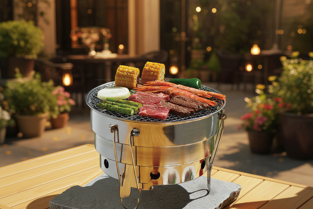 This compact stainless steel barbecue grill offers practicality, durability, and portability—making it an excellent choice for outdoor cooking enthusiasts.