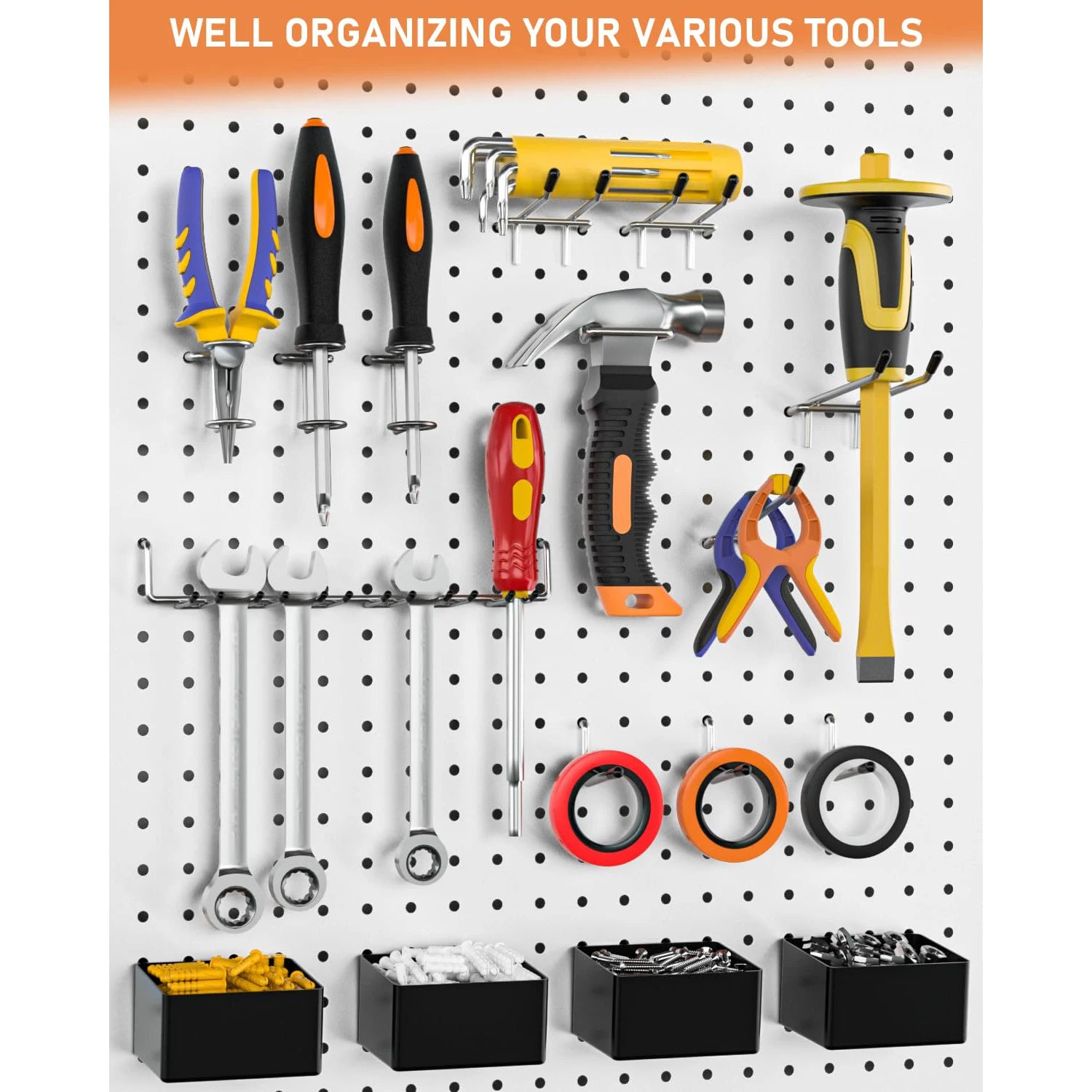 Transform your workspace with this professional-grade tool storage solution. Designed to keep your tools organized and easily accessible, this system maximizes wall space while providing secure storage for power tools, hand tools, and accessories.