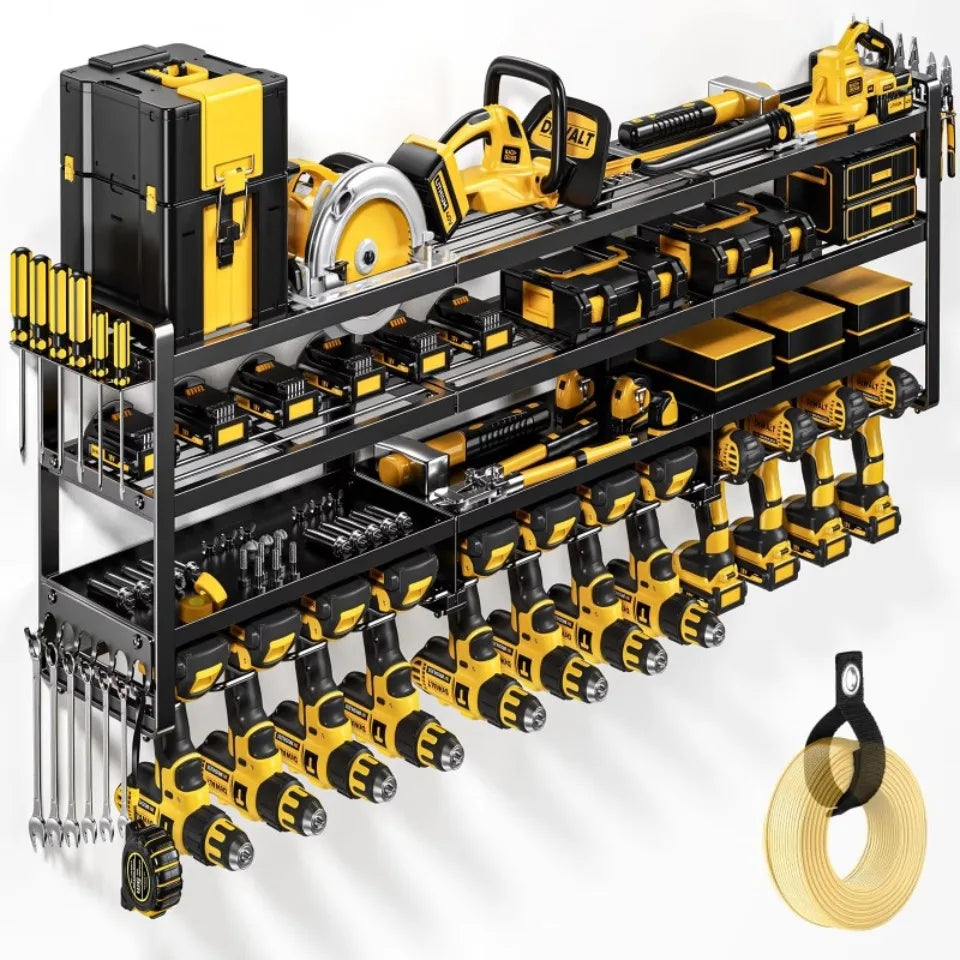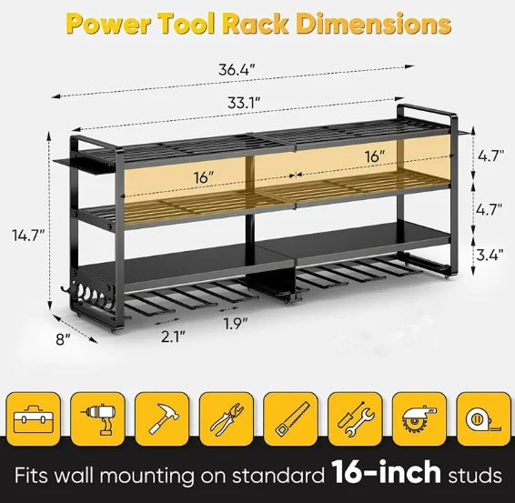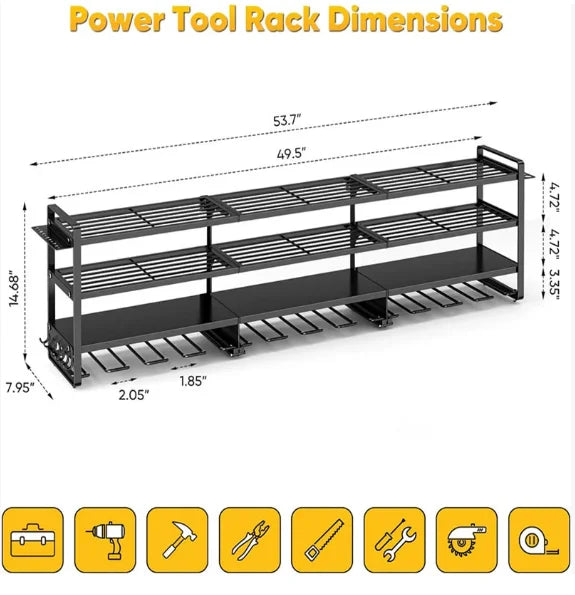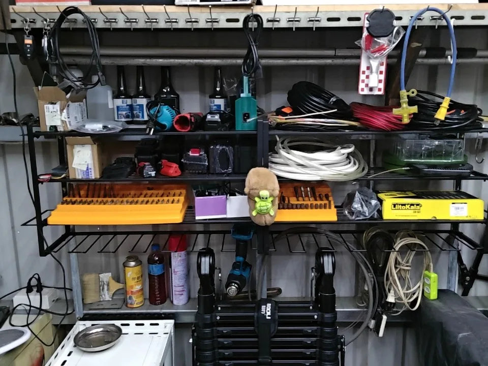 Transform your workspace with this professional-grade tool storage solution. Designed to keep your tools organized and easily accessible, this system maximizes wall space while providing secure storage for power tools, hand tools, and accessories.