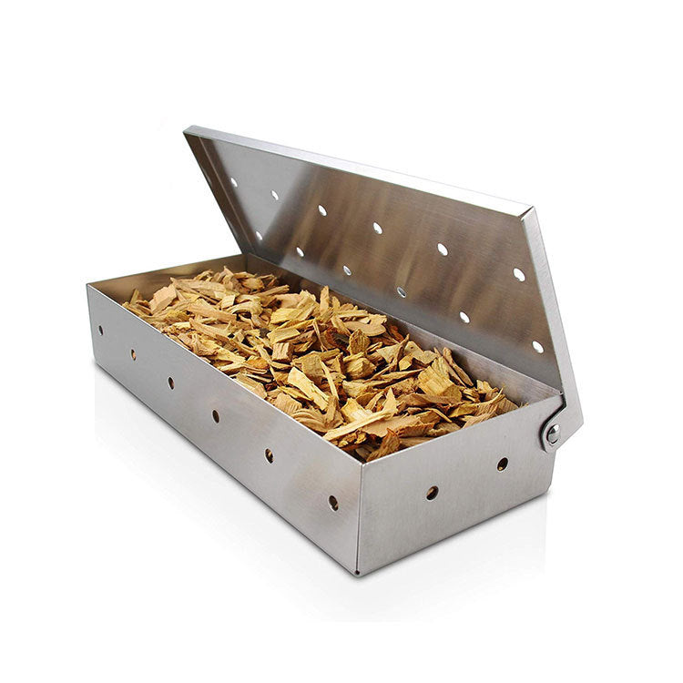 Enhance your barbecue with rich, smoky flavor using this durable stainless steel smoke box. Designed for use with gas and charcoal grills, it allows you to easily add wood chips and infuse your food with authentic smoked taste. Built from high-quality stainless steel 430, it offers excellent heat resistance and long-lasting performance.