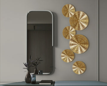 This stunning product features a beautiful irregular disc shape with a luxurious golden finish. The unique and eye-catching design creates a striking focal point on any wall. It will add a touch of luxury to your interior design.