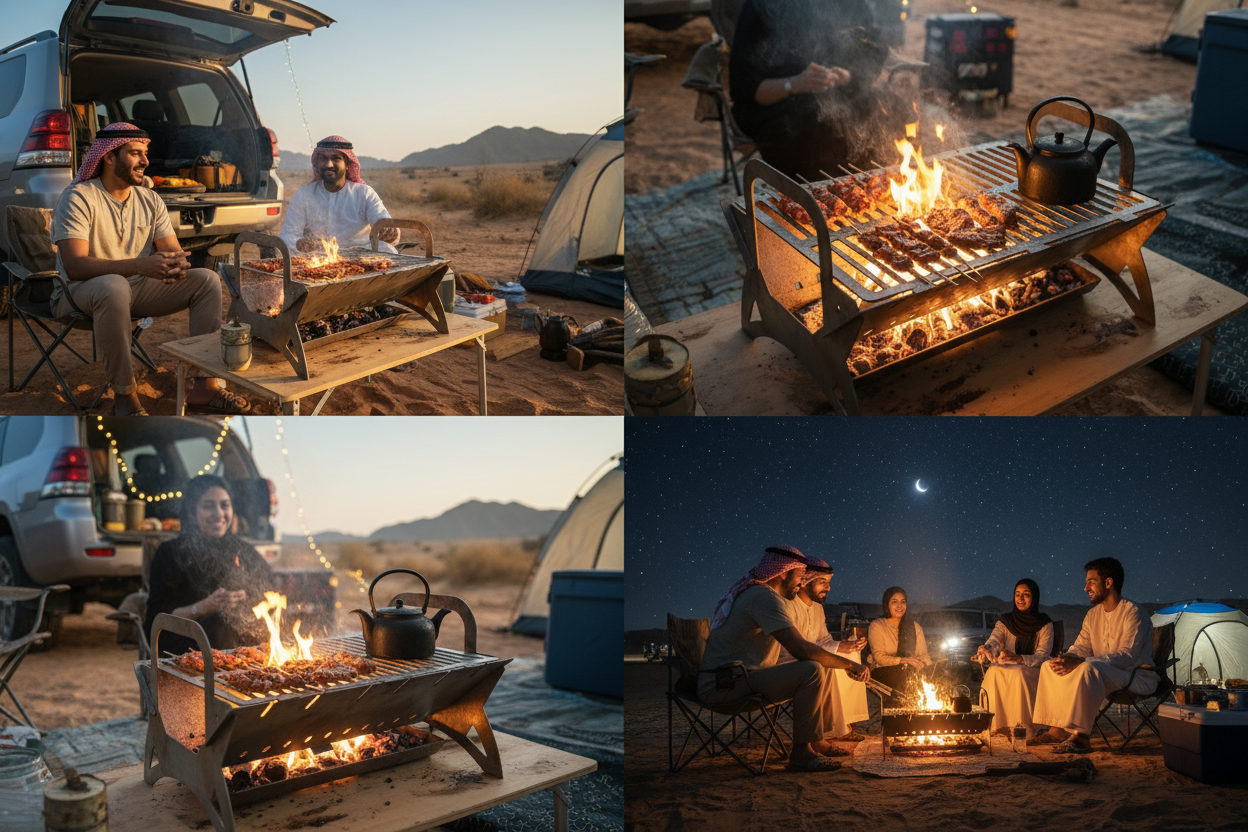 Its open-sided structure provides excellent airflow for hotter, cleaner flames, while the elevated grill rack keeps food perfectly positioned for even cooking. Whether you're hosting a desert camp, backyard barbecue, or weekend camping trip, this firepit delivers reliability, warmth, and authentic outdoor flavor.